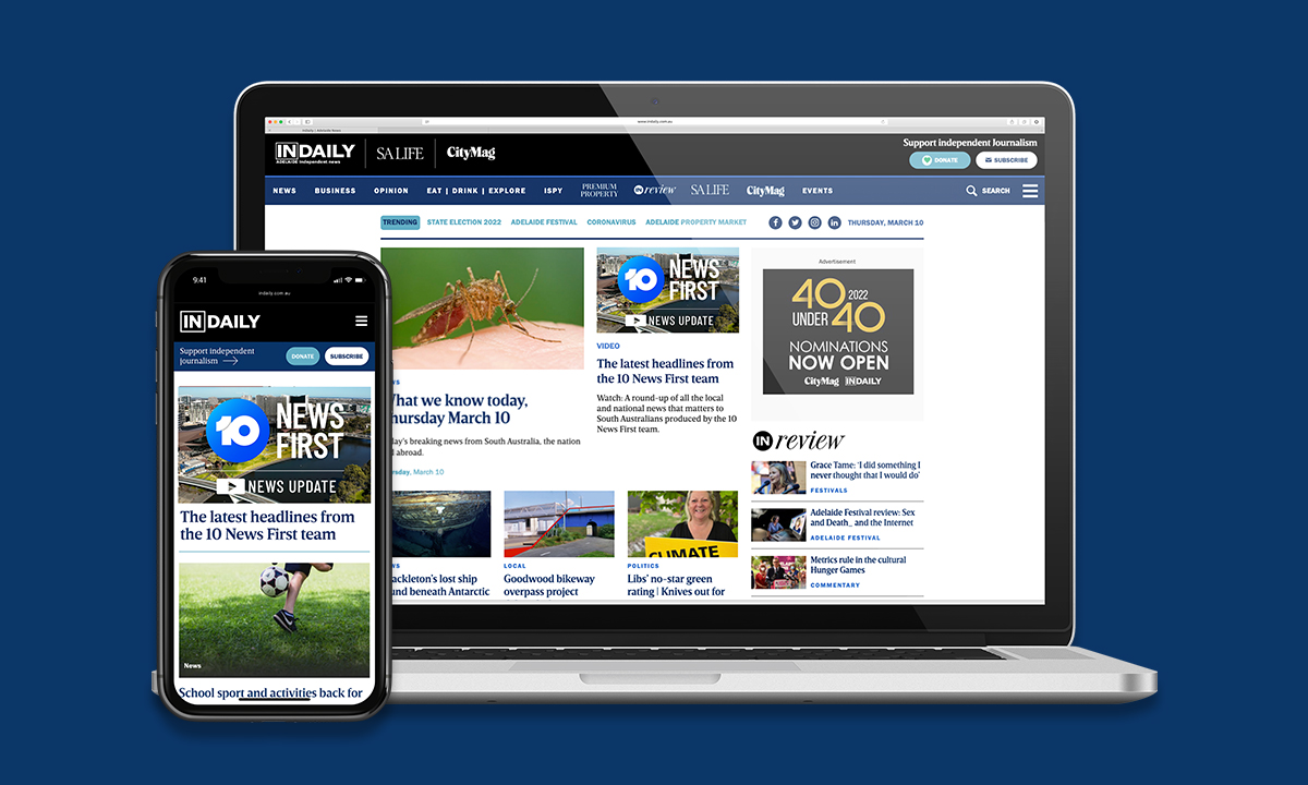 Growing South Australian digital news website, InDaily, has announced a broadcast partnership deal with Adelaide’s 10 News First.